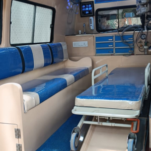 Designed for stable or non-critical patients. Equipped with stretcher, wheelchair, basic oxygen support, first aid kit, and trained medical attendants.